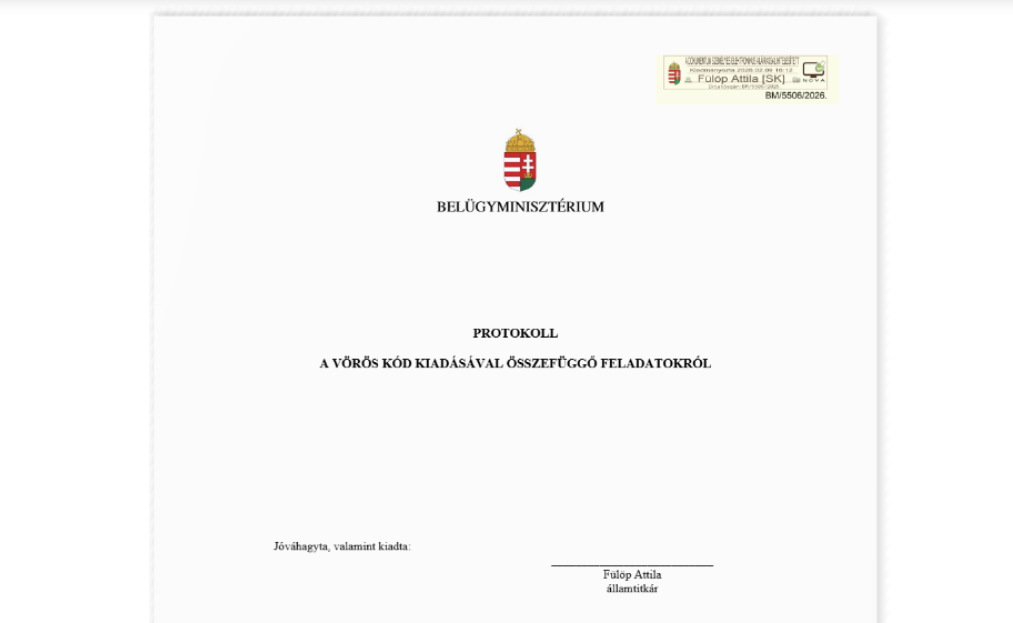 Módosult a “Protokoll a Vörös kód kiadásával összefüggő feladatokról” című dokumentum